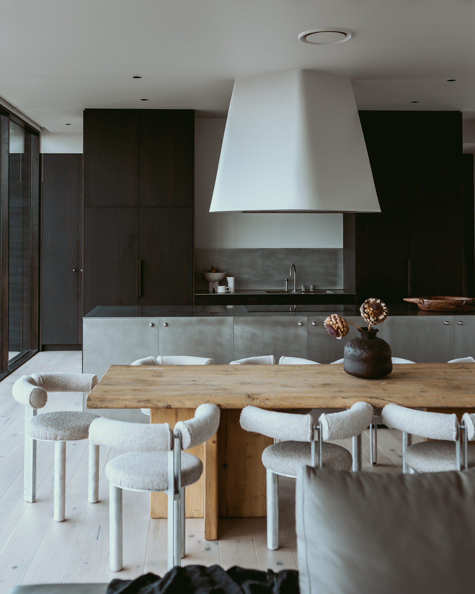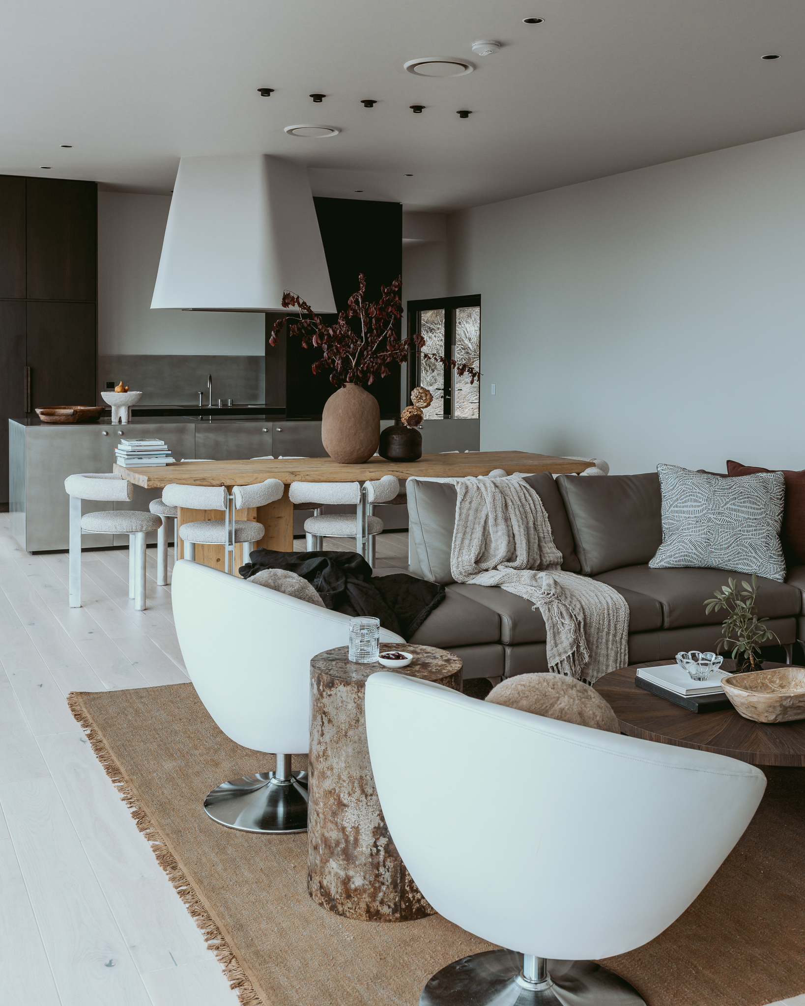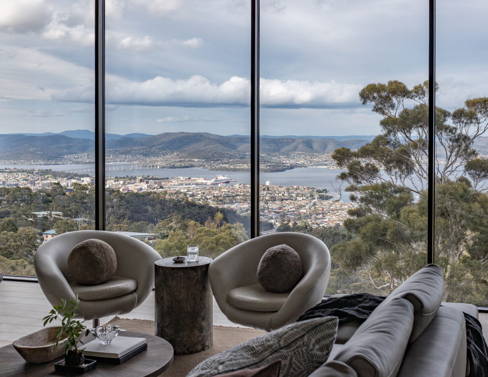 Perched high on the hillside, A Hill House is a contemporary home designed to capture sweeping views of the landscape and the River Derwent. Strong geometric lines, expansive glazing and a crisp, modern palette define its architecture. Integrated with the slope, the house offers dramatic outlooks and light-filled interiors, creating a refined retreat that celebrates modern design and its spectacular Tasmanian setting.