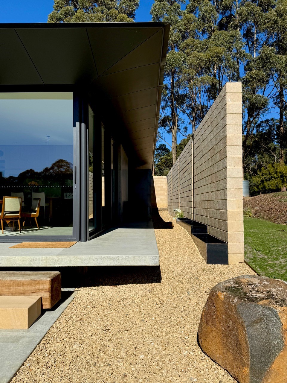 Placed carefully within the parameters of an existing approved building envelope, the Flowerpot house presents living spaces to the forested waterfront escapement. A purposeful wall to the west protects privacy & sight lines from the road above the site, while also providing a sequence of entry. The demarcation curates afternoon light through the home’s interior. Opening to the north, social spaces flood with sunlight while sleeping spaces and a small working studio tuck more privately to the south. This is a simple home for rural living that is mindful of its scale within the broader context.