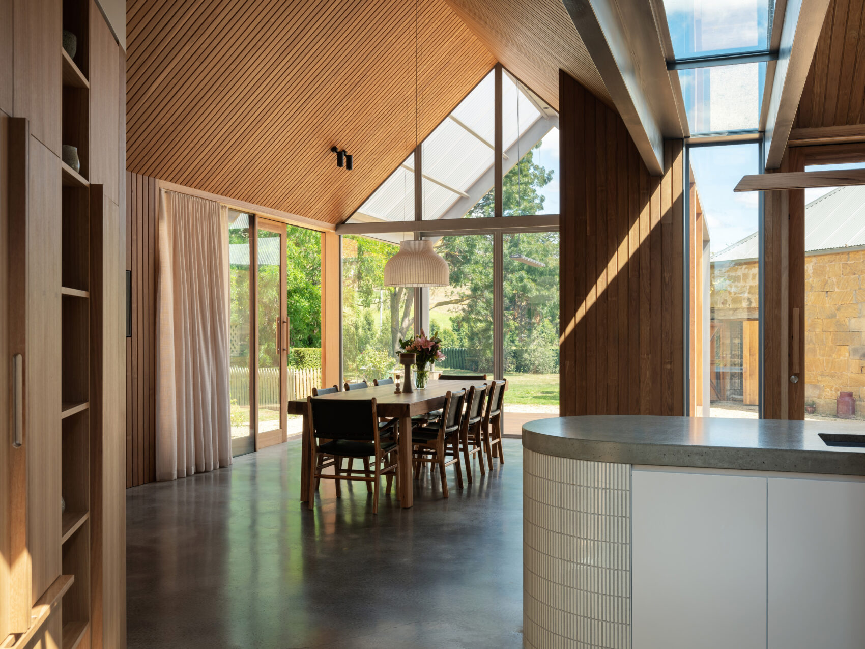This thoughtfully designed project celebrates the property’s rich history while introducing contemporary additions that connect seamlessly with the surrounding farm environment. The removal of a 1970s extension and heritage outbuilding made way for spacious, open-plan living areas that honour the home’s original character while enhancing functionality and comfort.